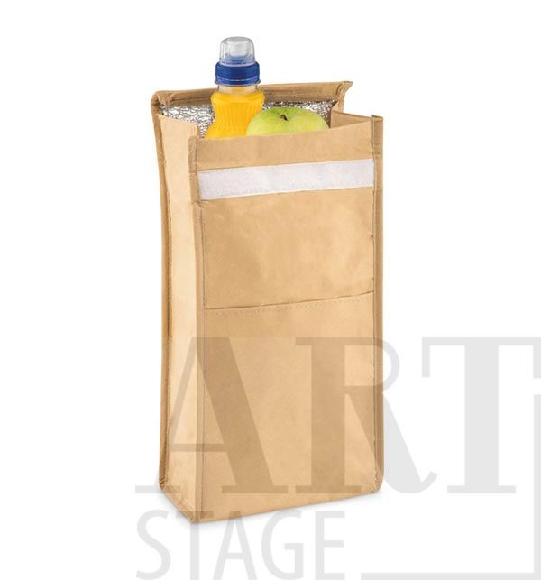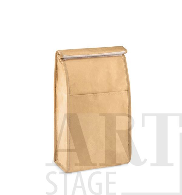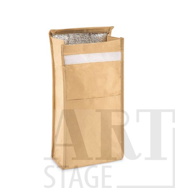 Woven recycled paper woven cooler lunch bag with front pocket. Isolation material: PE foam layer. Capacity 3L.