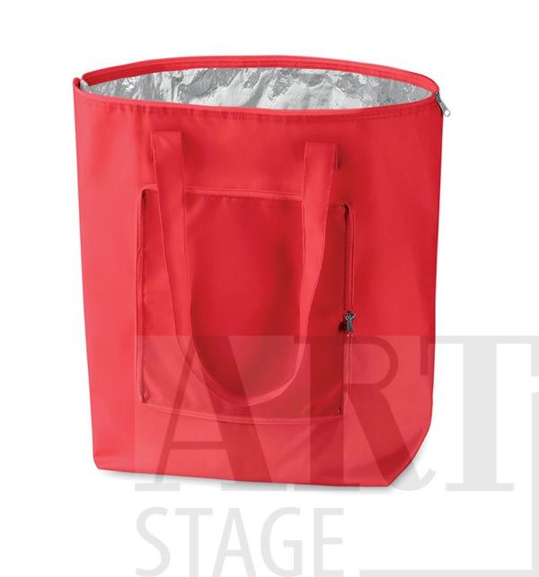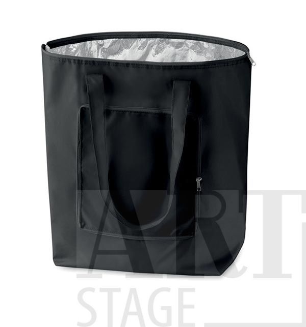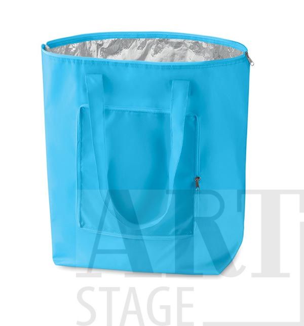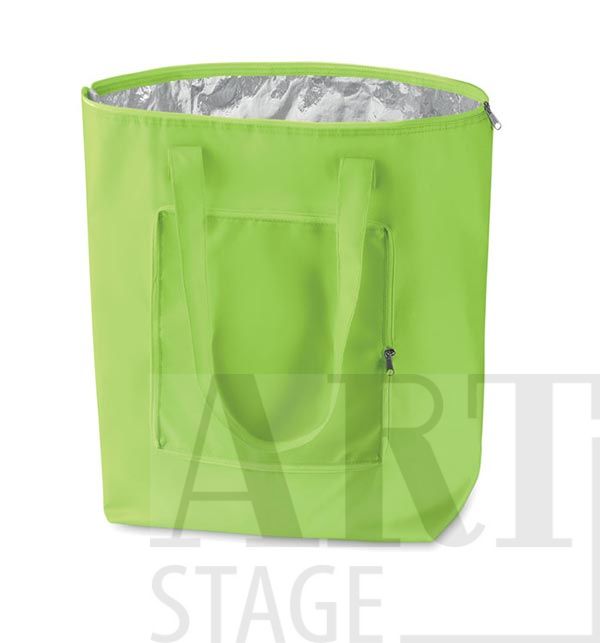 Convenient foldable cooler bag. 210D polyester. Isolation material: aluminium foil. Capacity 13L.