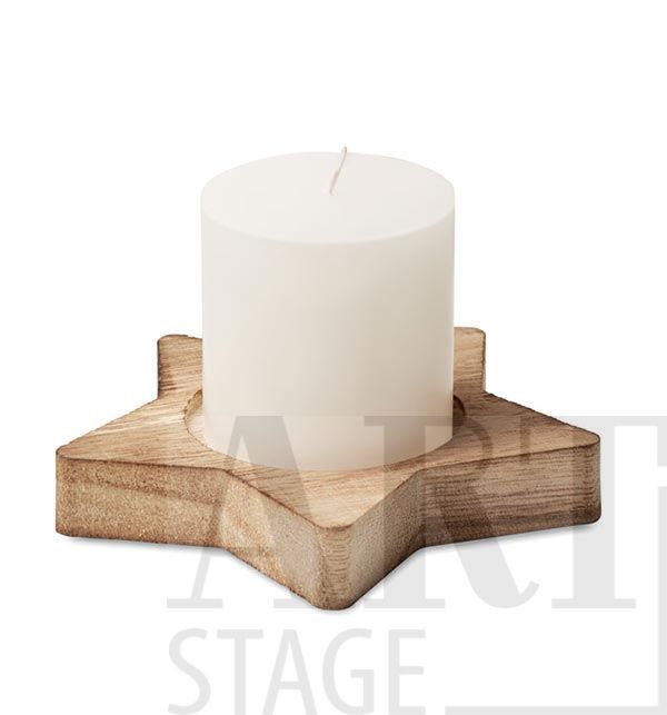 Star shaped wooden decorative base with a vanilla fragrenced candle. Set the perfect mood at home with some candles. This scented candle comes in a vanilla smell. The wooden star plate will give a stylish and natural look to your home. Burn time: 12 hours. Wood is a natural product, there may be slight variations in colour and size per item, which can affect the final decoration outcome.