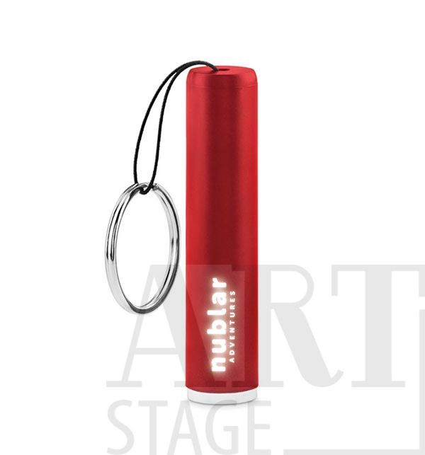 LED bulb torch in ABS with key ring. 3 AG3 batteries included. The barrel includes a LED light to illuminate the engraved logo.
