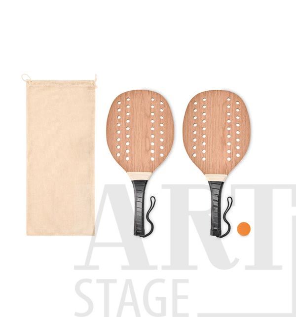 Beach tennis set consisting of 2 Rosewood paddles with PU taped grip and 1 soft ball. Presented in cotton pouch. FSC®-certified | FSC 100%, N5.7, FSC-C213206