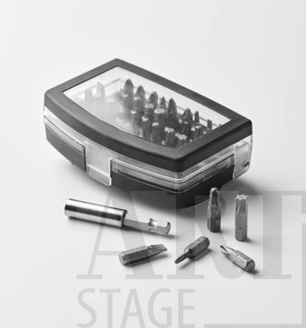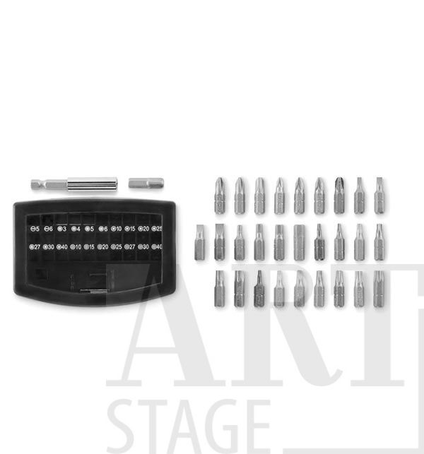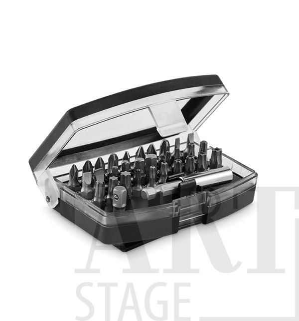 Комплект от 32 различни битове за отвертки с въртящ се държач.
